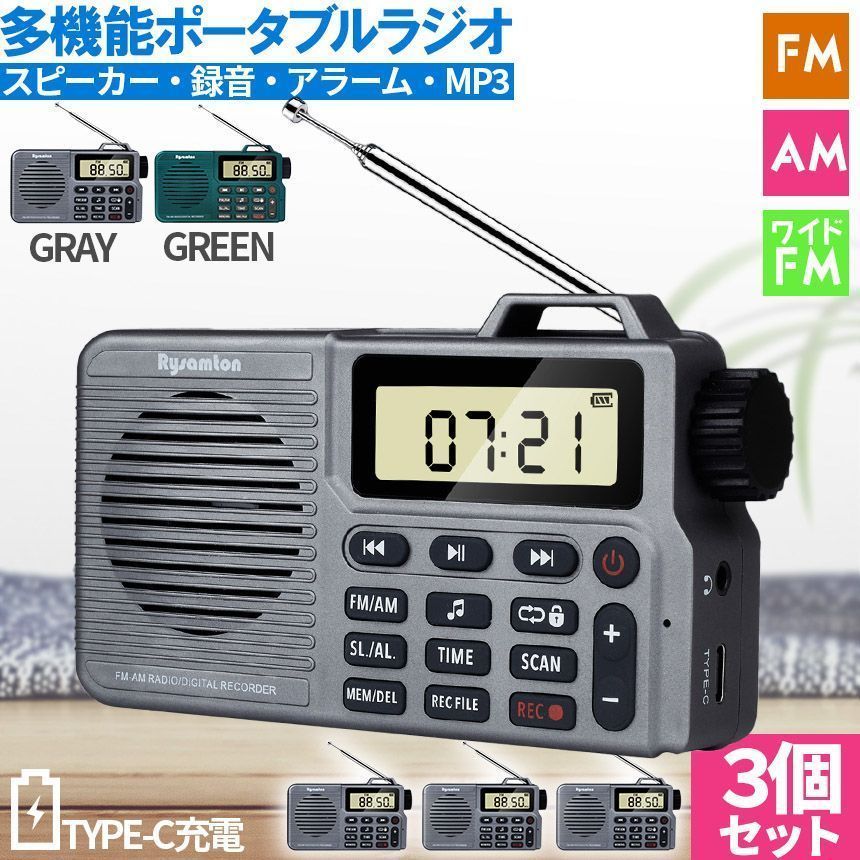 ポケット ラジオ 3台セット ポータブル AM FM ワイドFM 2 対応 録音 音楽プレイヤー 収音 スピーカー ブルートゥース bluetooth 充電