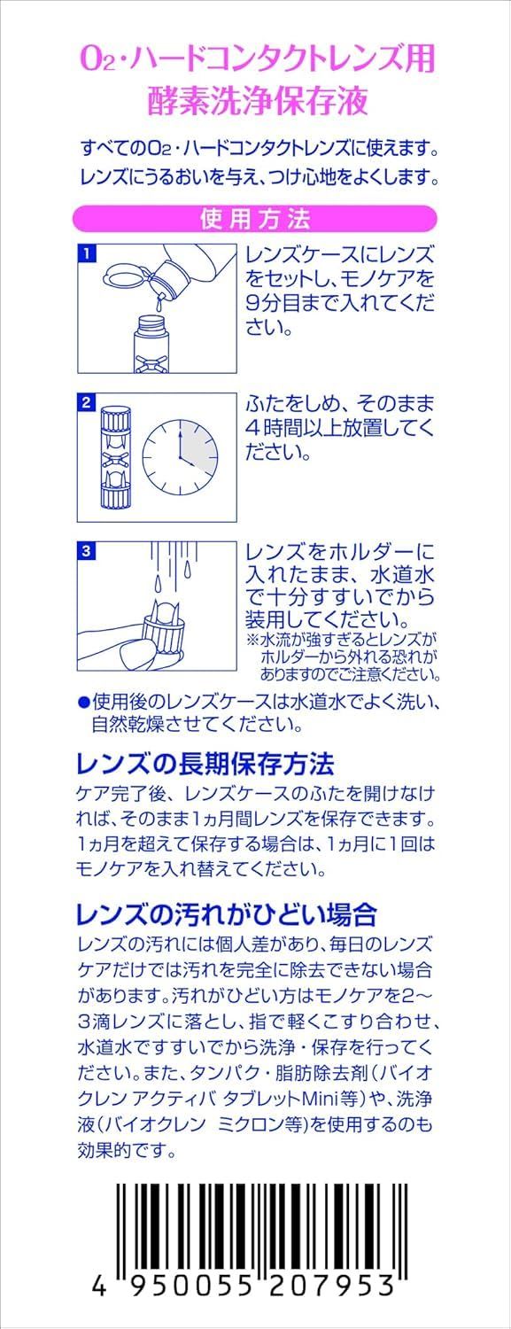全てのO2・ハードレンズに対応1本で強力洗浄・保存&タンパク除去ヒアルロン酸ナトリウム配合により、レンズの潤いを長時間キープレンズのくもり・ゴロゴロ感の原因タンパク・脂肪汚れを強力除去抗菌