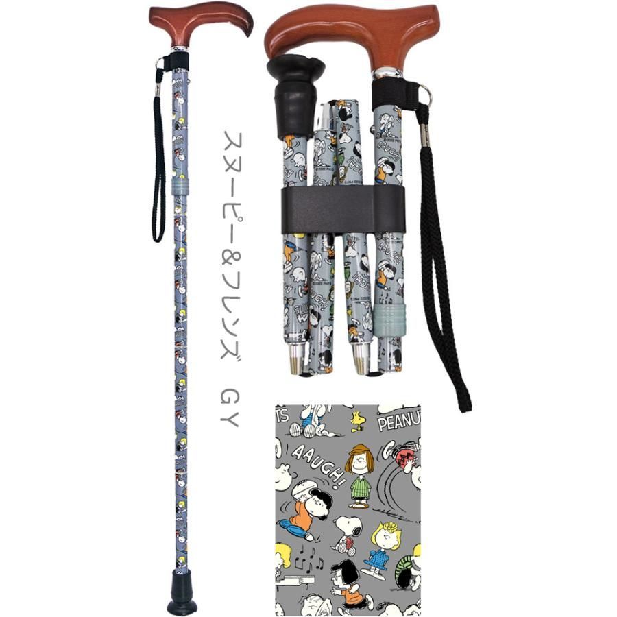 プレゼント付 SNOOPY スヌーピー コンパクト ステッキ 折畳伸縮型 かわいい 折りたたみ 伸縮 折り畳み 折りたたみ式 杖 マキテック 車椅子 骨折 リハビリ プレゼント