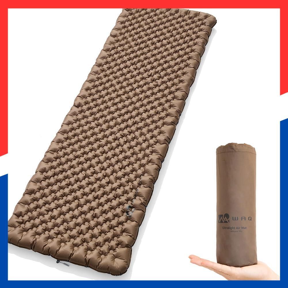 WAQ Ultra Light AirMat ウルトラライトエアマット アウトドア 7cm R値6.8 R値7.0 超軽量 コンパクト キャンプ 登山 簡単収納 エアバッグ付 リペアキット付 r値 マット 車中泊 テント泊 防水 防災 (スクエア-TAN(タン))