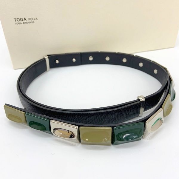 TOGA PULLA トーガプラ レザー ベルト スタッズ 無地 長さ調節 き レディース ブラック グリーン系 服飾小物 IF 15169