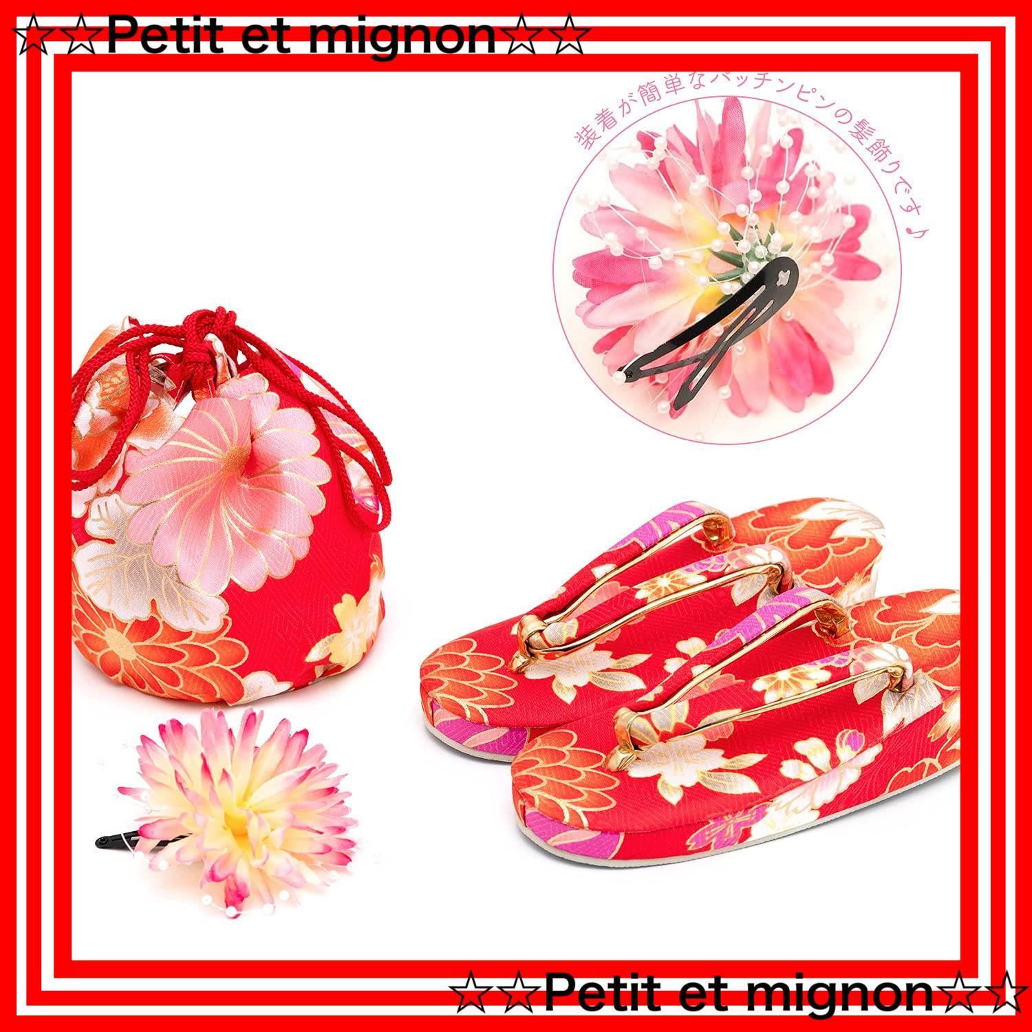 髪飾りや巾着、草履など含めて9点のフルセットなので、これだけで必要なものがすべて揃います。