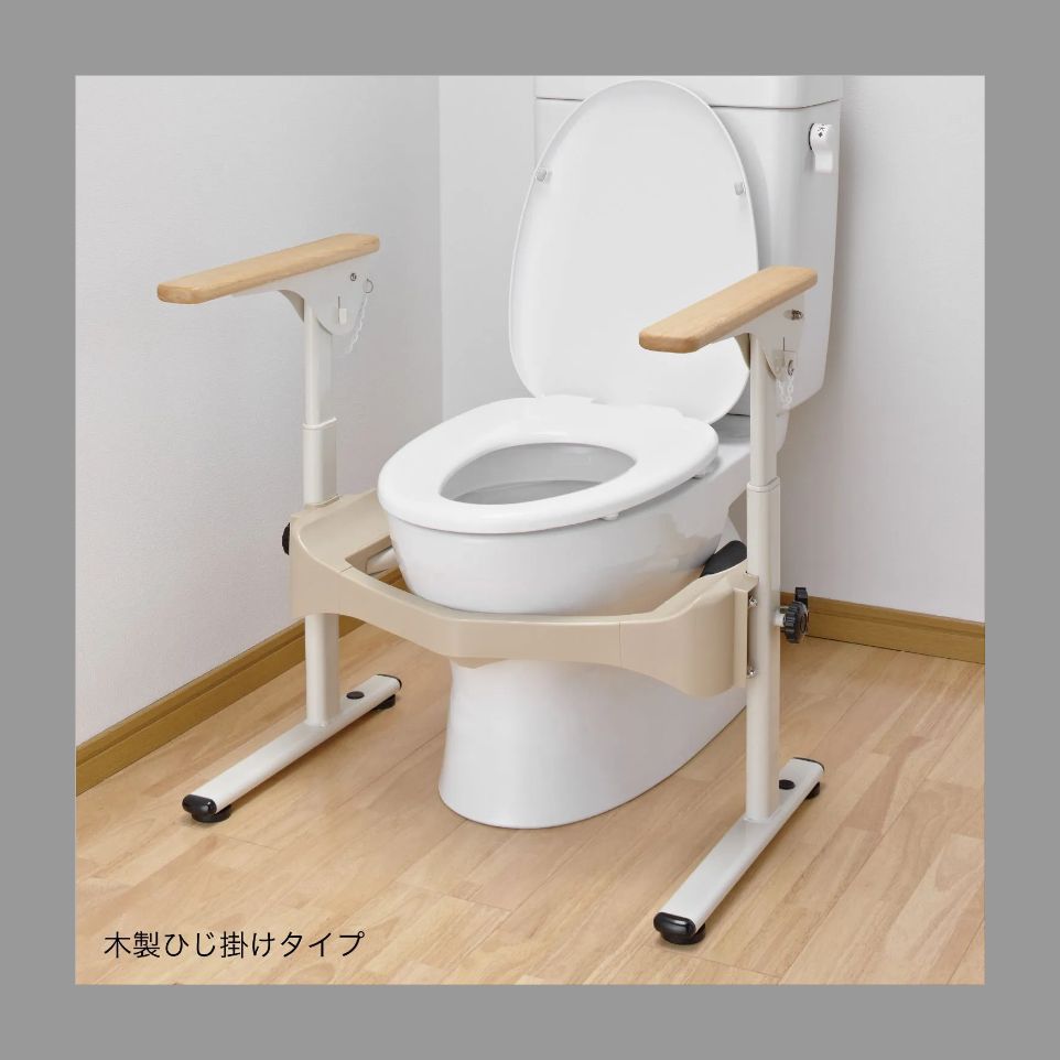 ・洋式トイレを挟みこんで固定するトイレ手すりです。