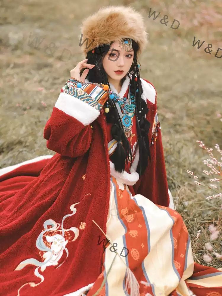 冬 漢服風 異国情緒 チベット風 防寒ポンチョ 綿入れ 厚手 ロング マント ストリート 民族調 温もり 特別な一枚 雪原に舞う色とりどりの経文のように 民族の魂を纏う温かなマント
