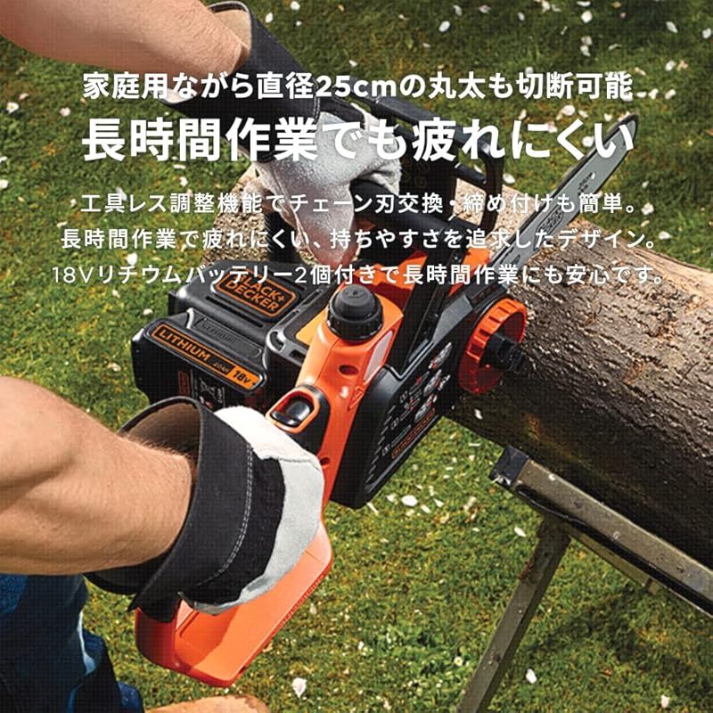 ブラックアンドデッカー BLACK DECKER コードレス チェーンソー 250 mm DIY 電動工具 切断工具 ガーデニング 工具 18 V 2 0 Ah バッテリー 付き 1