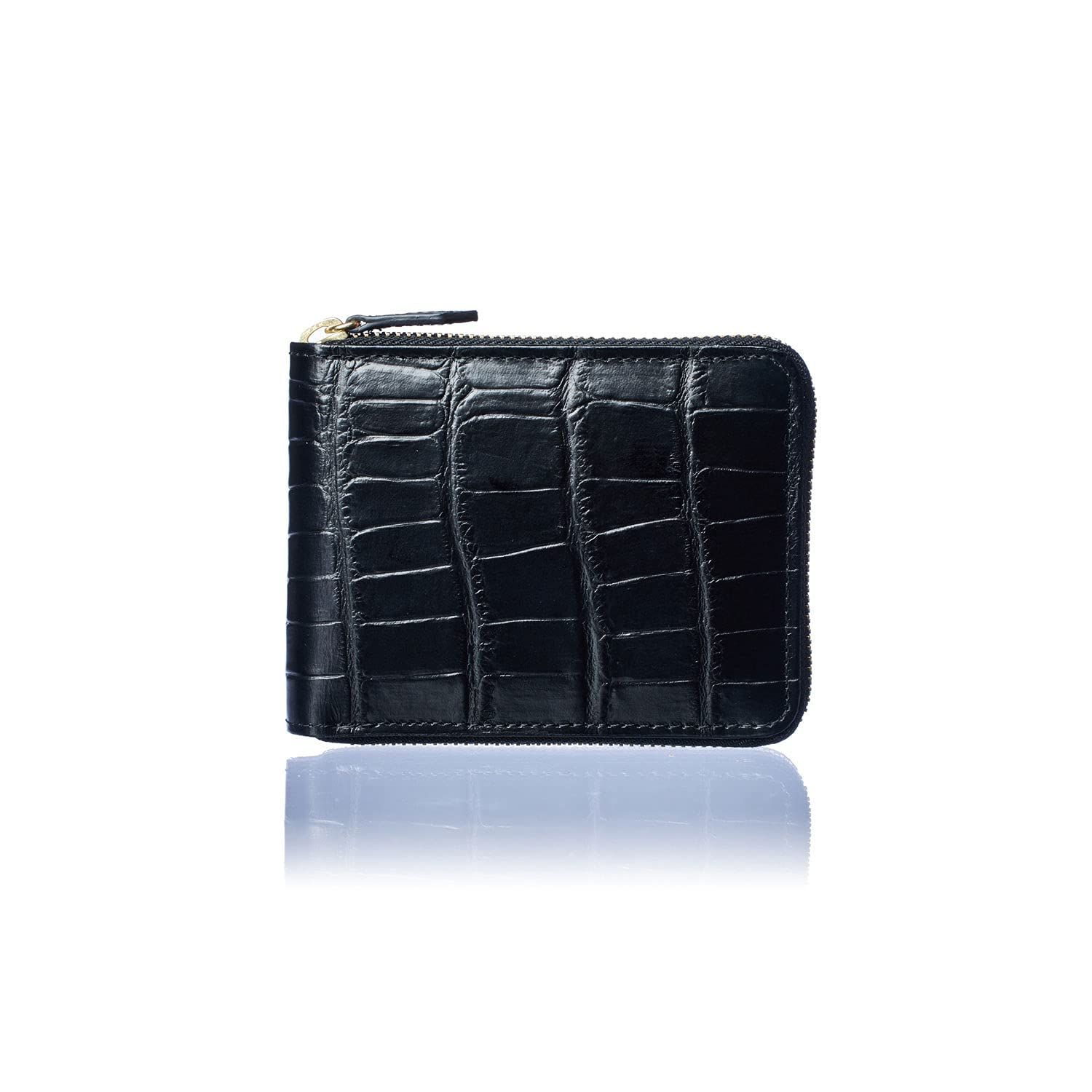 Color Black CHRISTIAN BELETT イタリア ORION社製 牛革 メンズ 二つ折り 財布 クロコ 型押し 分厚くなりにくい ラウンドタイプ