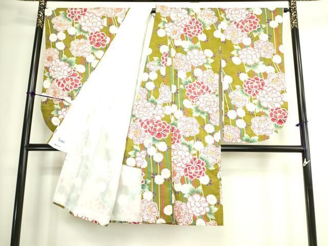 平和屋着物 小振袖 二尺袖 舞桜文 牡丹 金彩 洗える着物 op