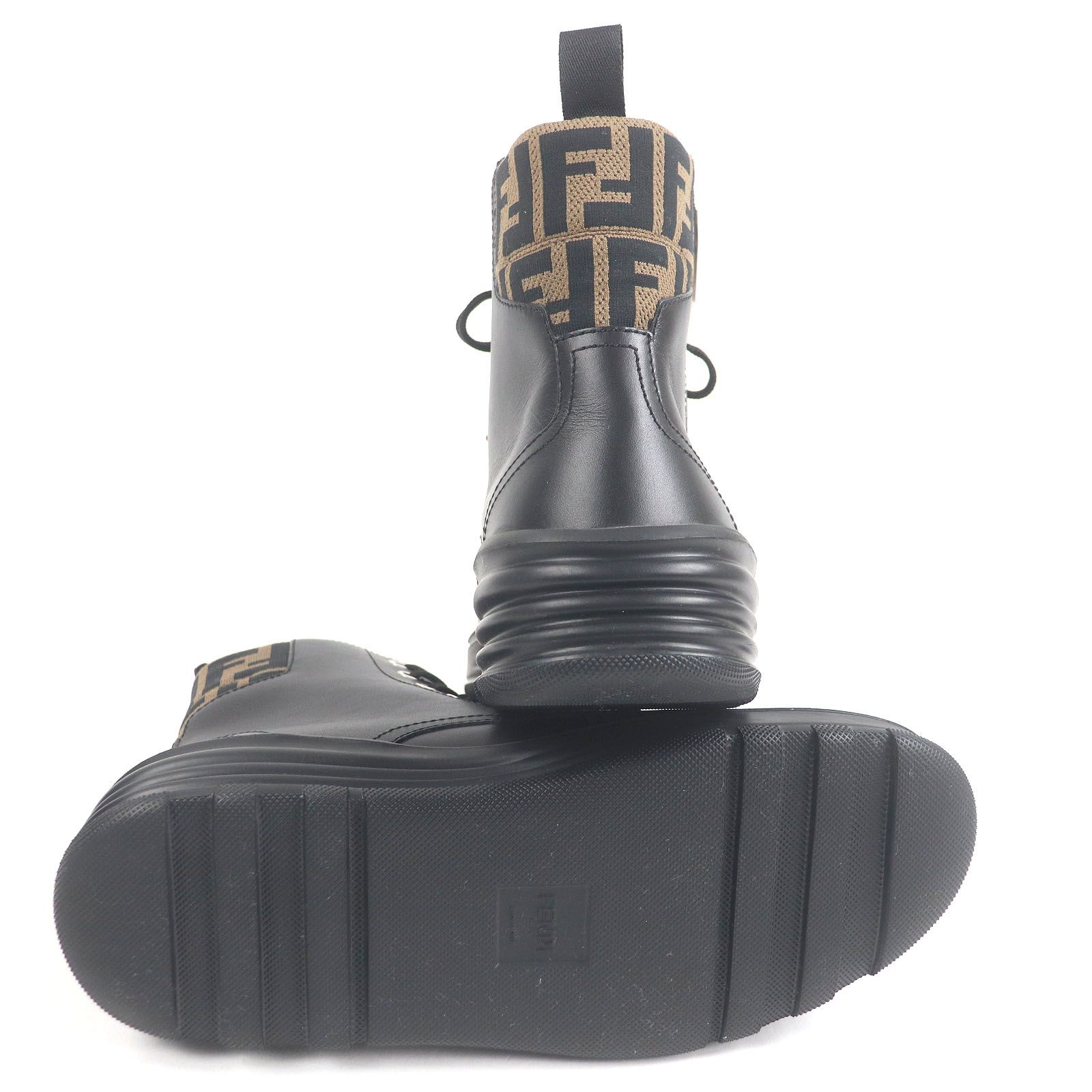 FENDI フェンディ 7 U 1399 レザー FFロゴ ズッカ サイドジップ レースアップ アンクルブーツ ブラック イタリア製 メンズ