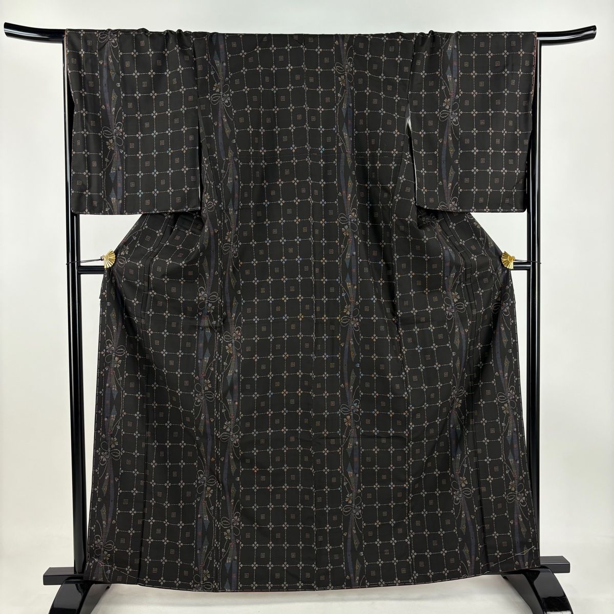 大島紬 身丈163 cm 裄丈68 L 袷 純泥染 やまと 証紙 格子 桜 墨色 正絹