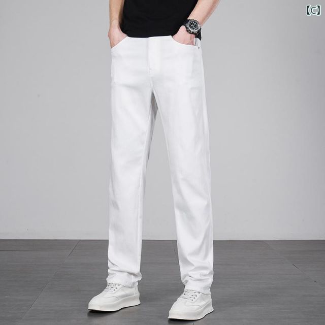 商品名:[32]メンズ ファッション 服 オシャレ シンプル 大人 かっこいい 大きいサイズ ストリート 紳士服 冷感 ホワイト ジーンズ スリム ストレート ストレッチ ハイエンド テンセル カジュアル 夏 薄手