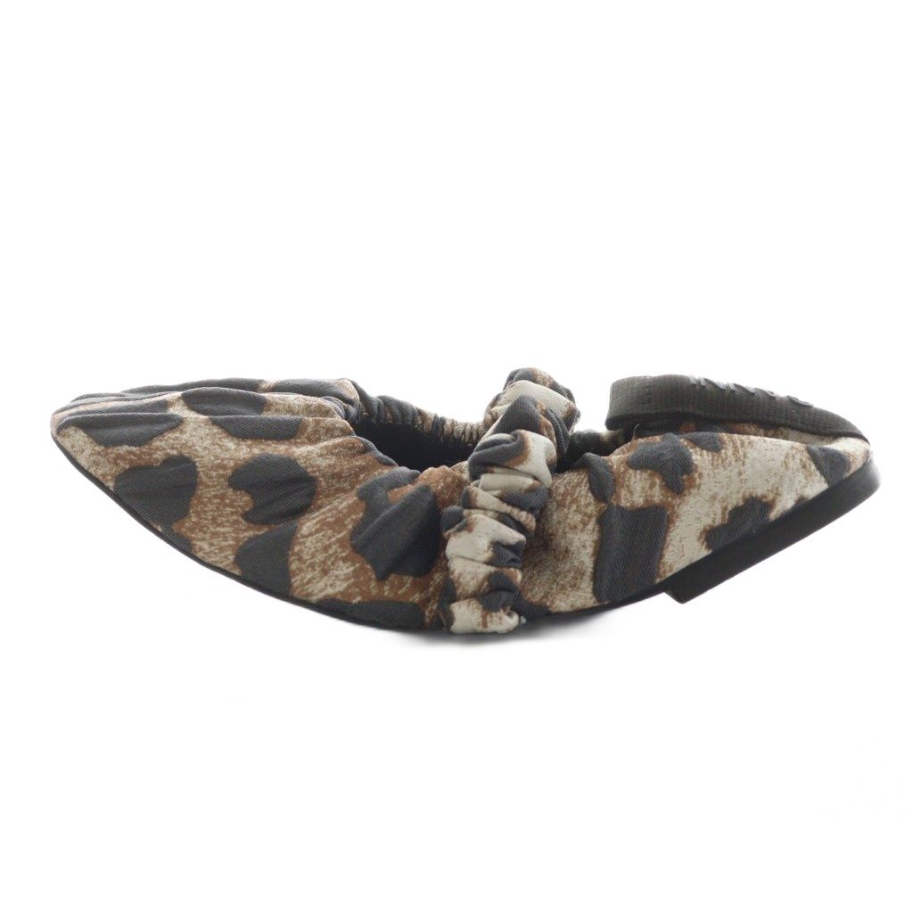 ガニー GANNI SOFT SQUARE TOE バレエシューズ スクエアトゥ レオパード ヒョウ柄 レザー 36 茶 ブラウン 黒 ブラック S 1982 AN 52 GY