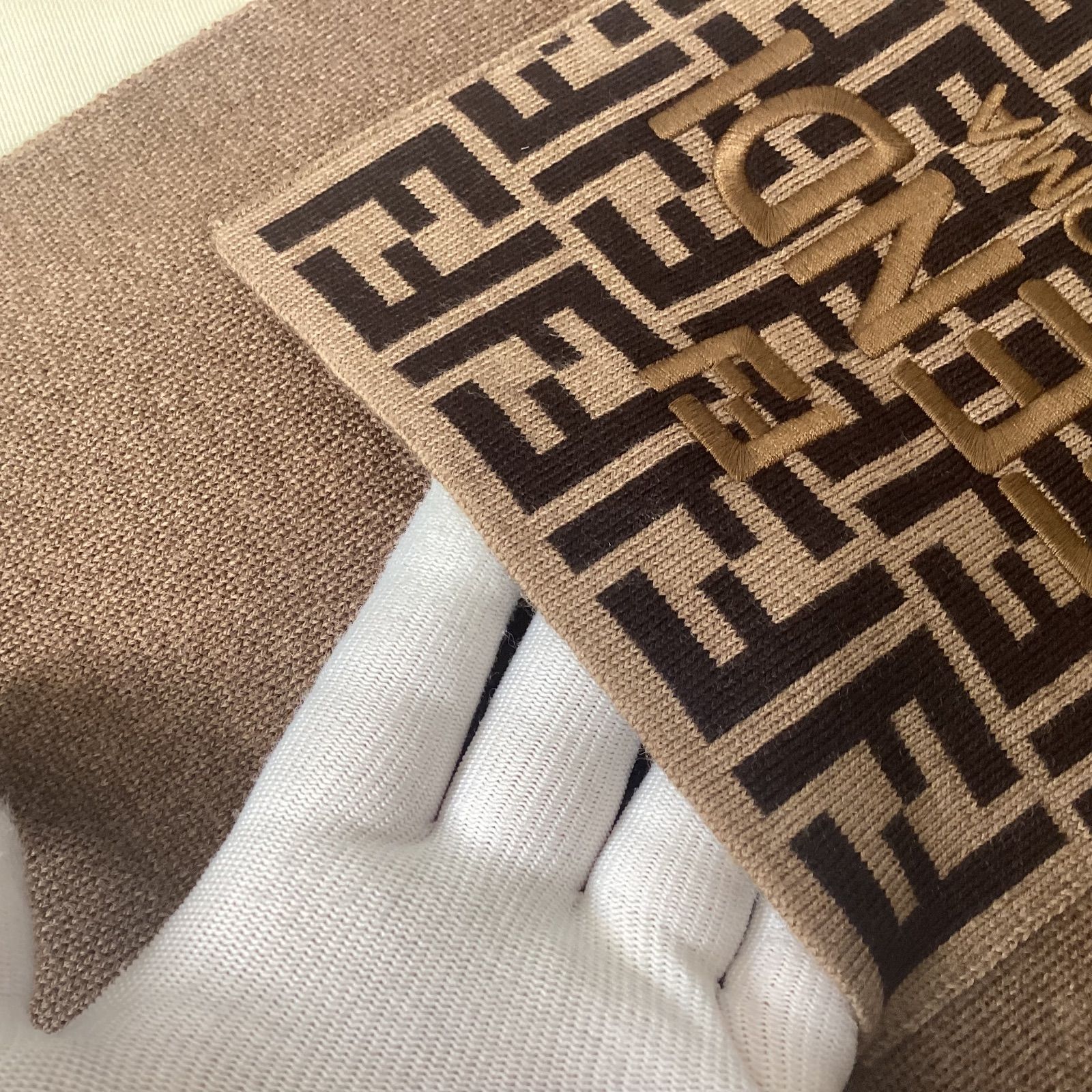 ・ベージュ&ブラウンウールスカーフ