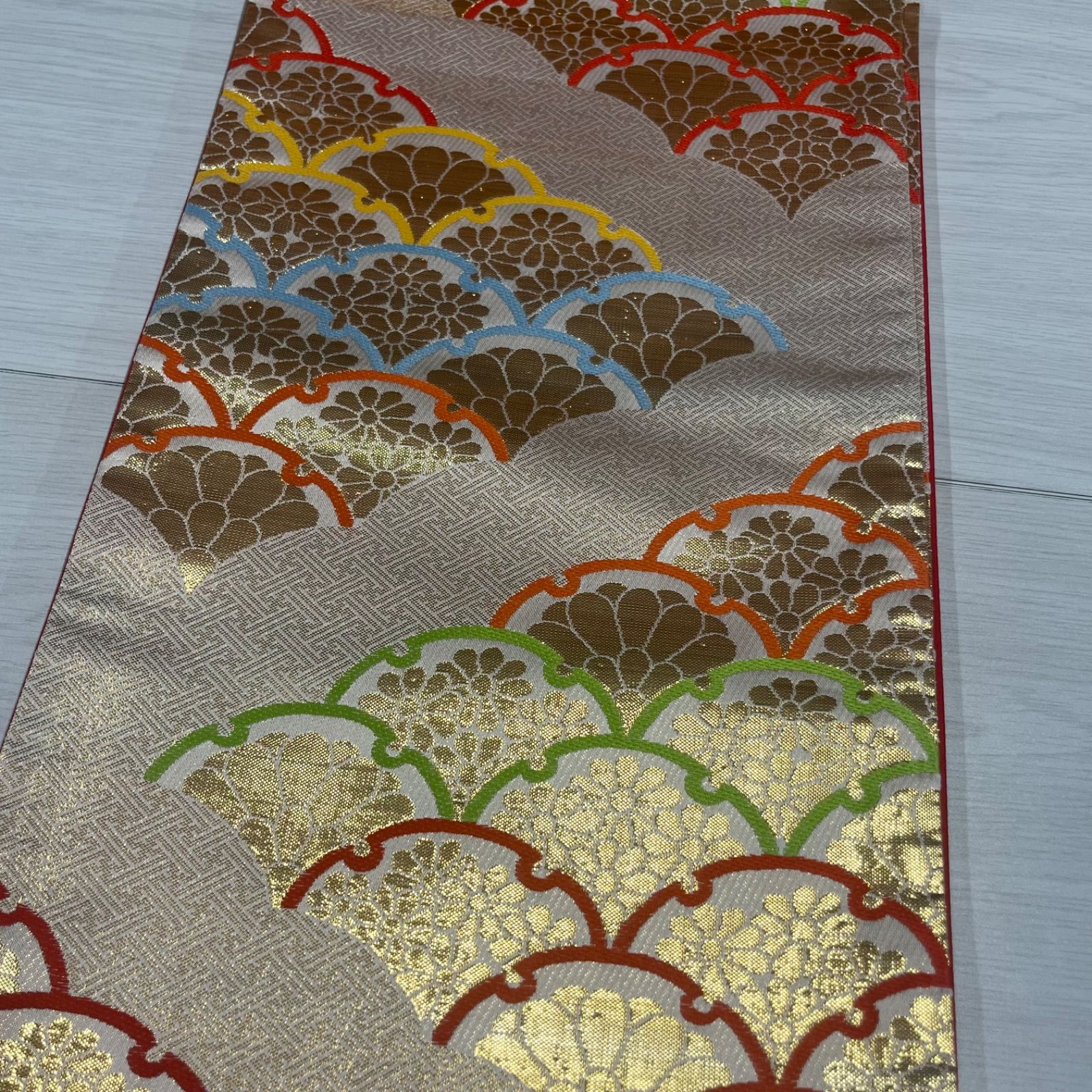 子ども 袋帯 帯 七五三 七歳 子供用 白 赤 扇