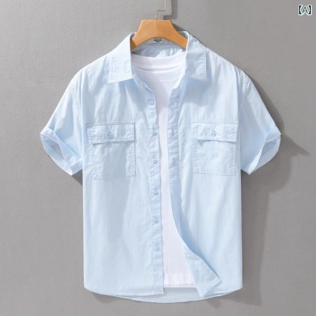 M メンズ ファッション 服 男性用 オシャレ シンプル 大人 かっこいい 大きいサイズ ストリート 紳士服 夏 無地 コットン 半袖 シャツ ポケット ホワイト 通勤 ウィンド 通気性