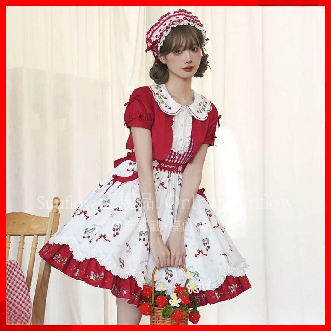 イチゴ柄ロリータワンピースお出かけや女子会にぴったり