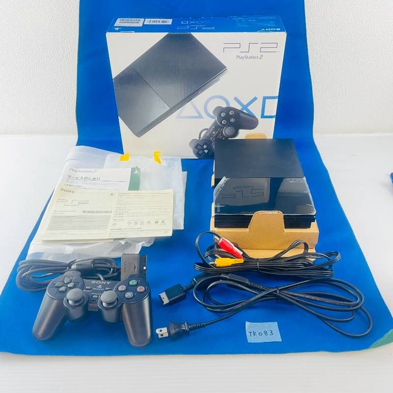 TK 083 すぐ遊べるセット SONY PS 2 SCPH 90000 薄型 ブラック セット ソニー プレステ2 playstation プレイステーション2 本体 デュアルショック2 コード類 取扱説明書 箱あり 据置型ゲーム機 第6世代