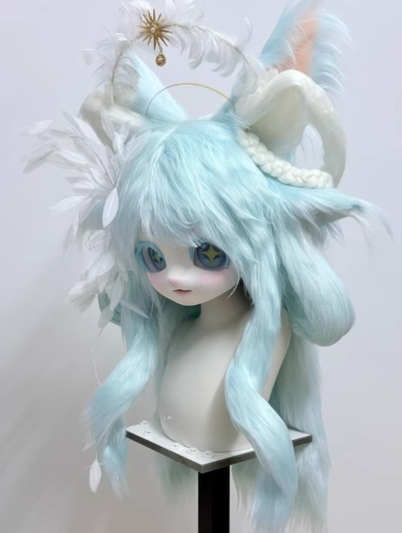 着ぐるみヘッド kigurumi NO.51 キツネ 水色 青 四つ耳 ファースーツ 全頭ヘッド ケモノ マスク ぬいぐるみ コスプレ コスチューム
