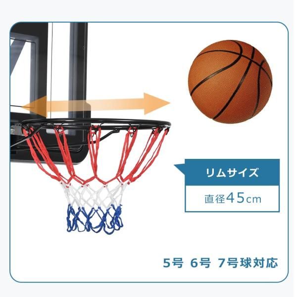 バスケットゴール230-305 cm 高さ6段調節 ミニバス対応 ゴール バスケ固定しやすい 三角形設計 高強度 高さ調節 屋外用 家庭用 工具付き 組み立簡単 爆買