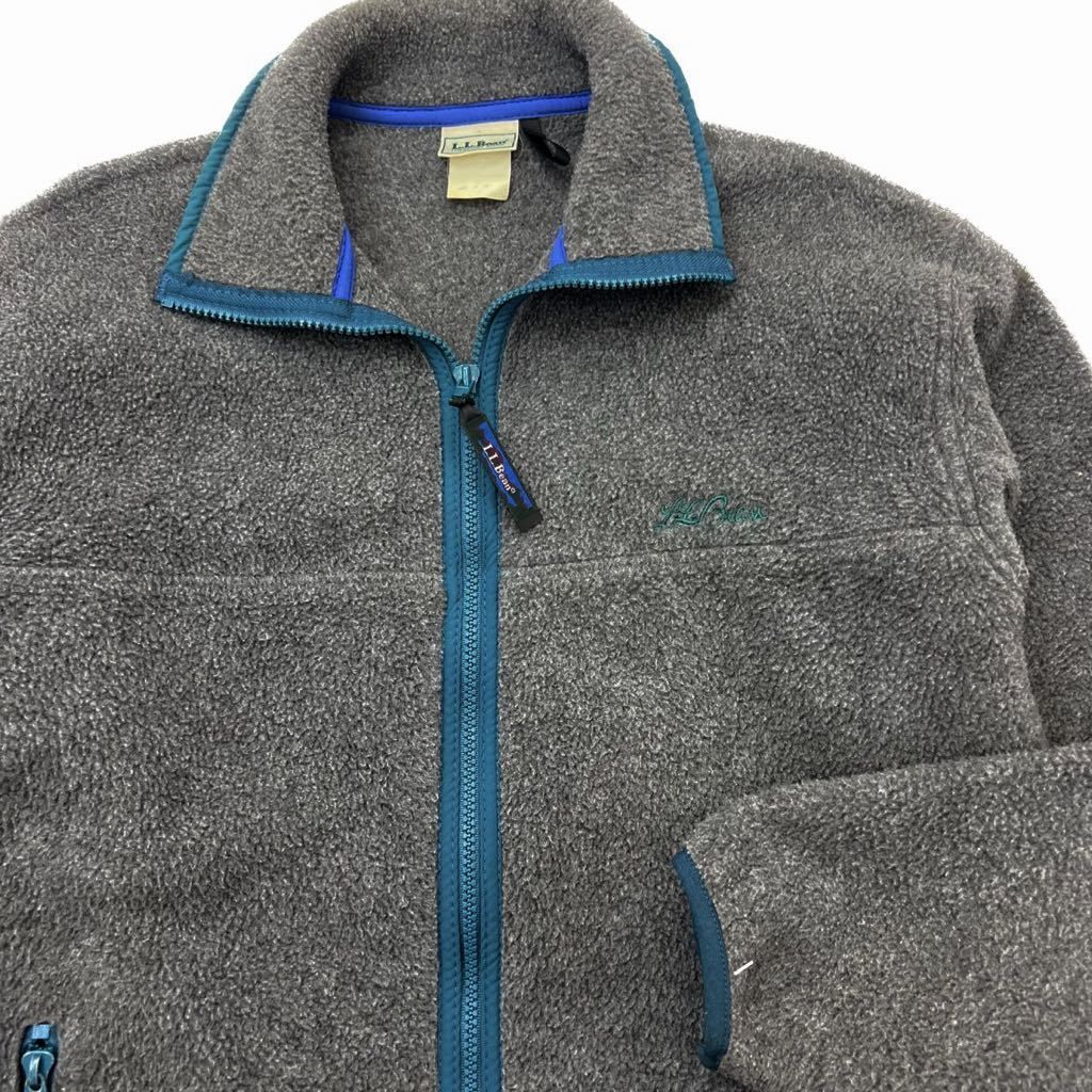 90 s L Bean フリース ジップアップ ジャケット グレー グリーン M相当 登山 アウトドア タウンユース エルエルビーン BJ 182