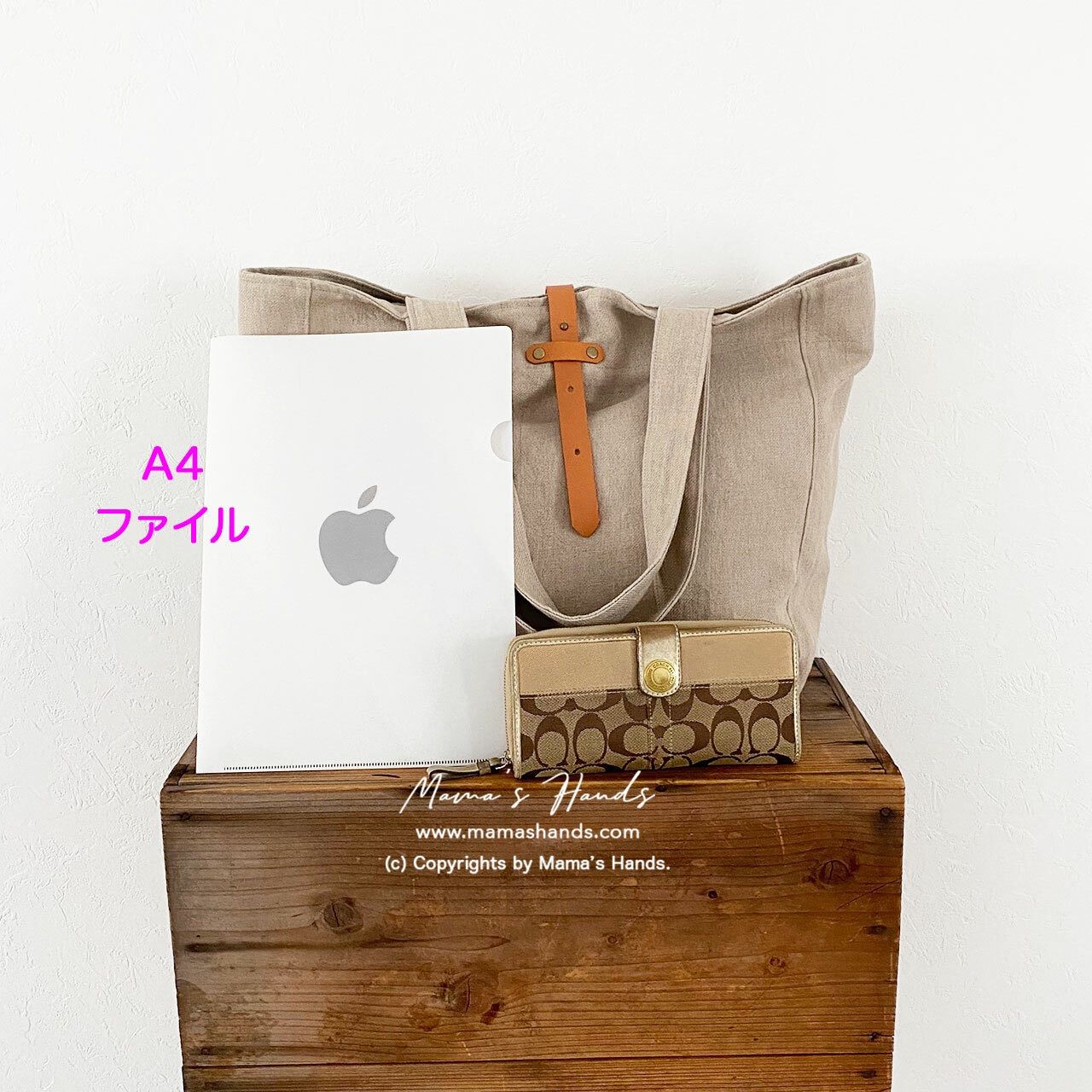 6点売れました 大きい リネン ナチュラル 生成り ベージュ 革 トートバック