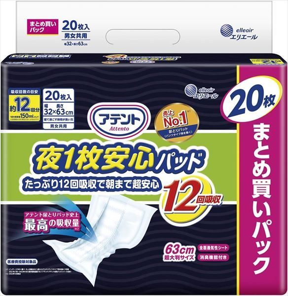 アテント夜 安心パッドたっぷり12回吸収で朝まで超安心12回吸収