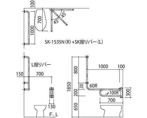 新協和 L握りバーセット洋式トイレ 可動型左32 mmヘアライン