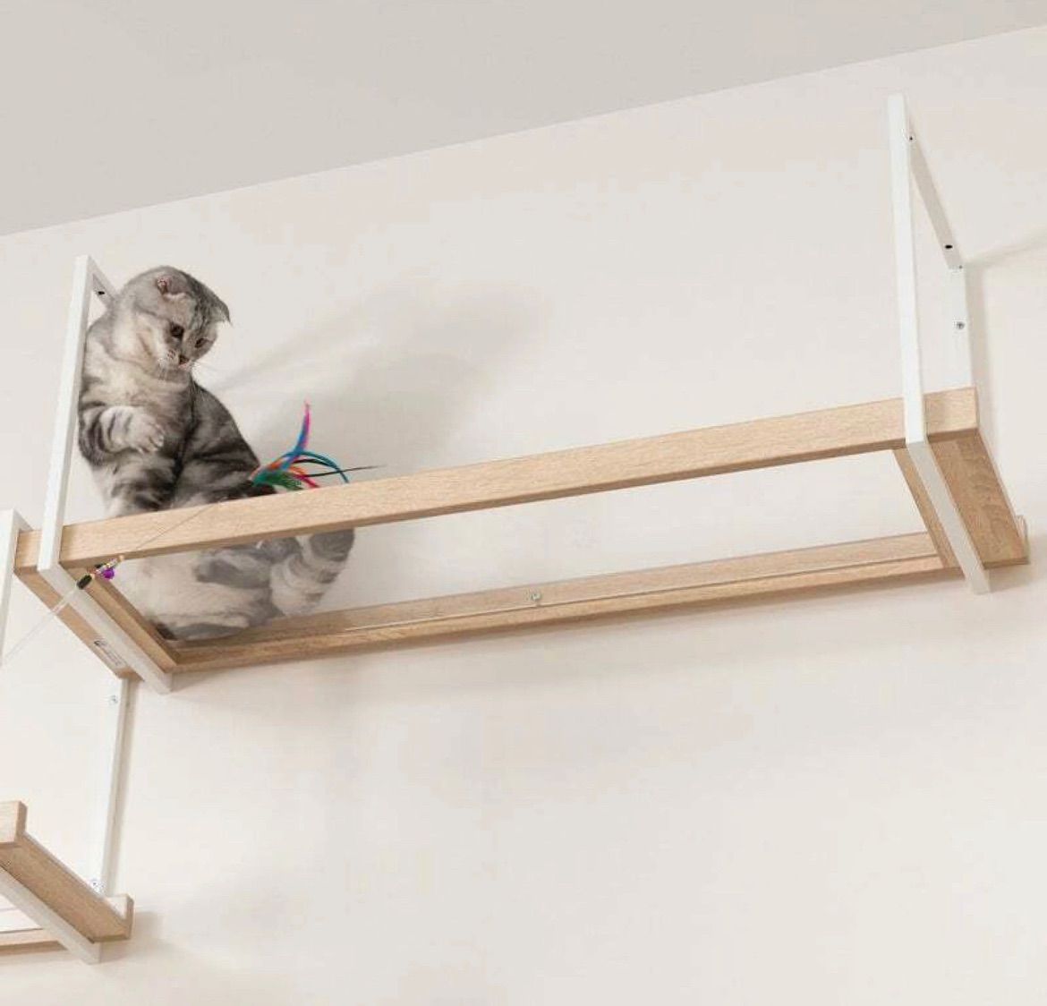 板のサイトは段差加工により滑り落ちないように設計されております。複数を繋げることで橋のような散歩コースになります。キャットウォークとして使用するほか、ウォールシェルフなどとして使用可能です。