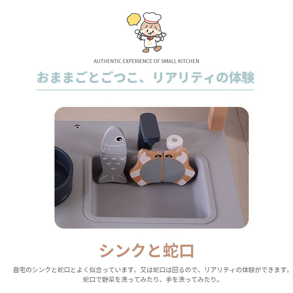 おままごとキッチン 木製 台所 調理器具付 食材 知育玩具 コンロ ミニキッチン おもちゃキッチン ダークグレー i 250325-368