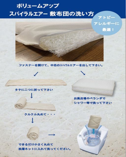 洗える三次元スプリング構造体敷き布団 中芯 東洋紡 ブレスエアー40mm 硬め シングル 約 キルトカバー付き スパイラルを使用した敷布団 敷きふとん 3つ折り 洗える ふわふわキルトカバー付き