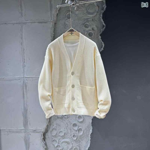 秋冬 コーデ メンズ 服 シンプル ファッション オシャレ 大人 かっこいい 大きいサイズ ストリート 紳士服 ニット セーター ジャケット 無地 カジュアル 韓国スタイル Vネック カーディガン トップス