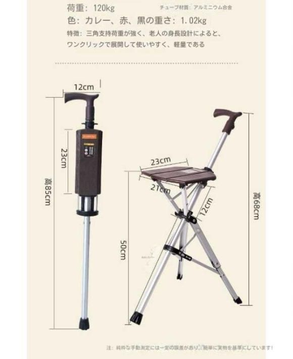 高齢者用杖腰掛け両用杖腰掛け付き腰掛け椅子携帯電動ワンタッチ開閉折りたたみ杖椅子