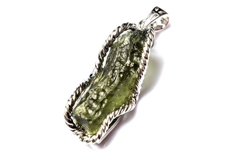 1点物 AA シルバー925 モルダバイト 26 x 9 mm 原石 ペンダントトップ パワーストーン 天然石 _PC 6487
