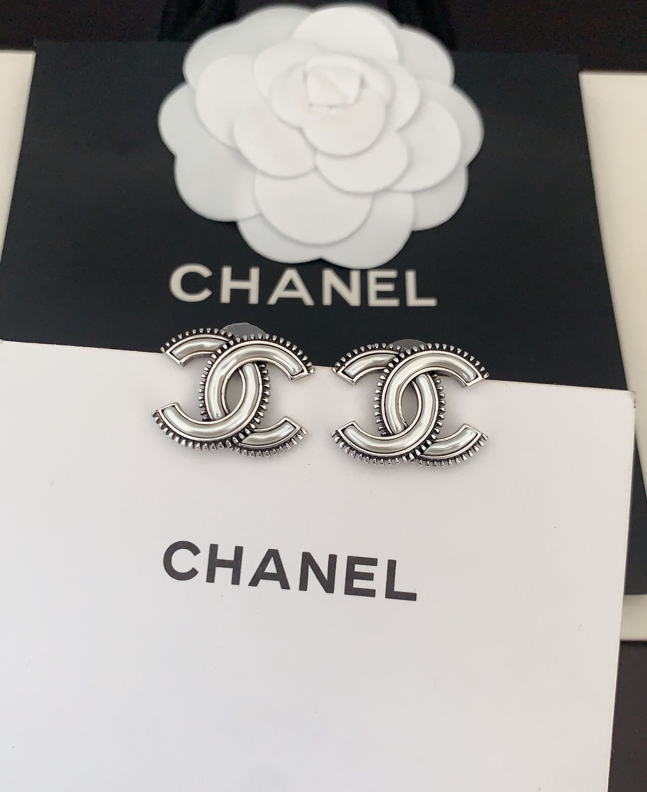 シャネル 最 アンティークシルバーパールCCイヤリング