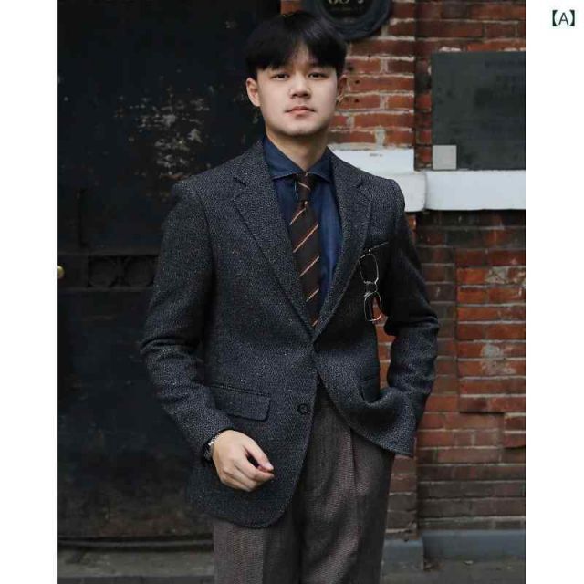 商品名:メンズ ファッション 服 用 オシャレ シンプル 大人 かっこいい 大きいサイズ ストリート 紳士服 レトロ ブラック グレー ウール ツイード 厚手 ヘリンボーン柄 カジュアル スリム 単品 スーツ ジャケット