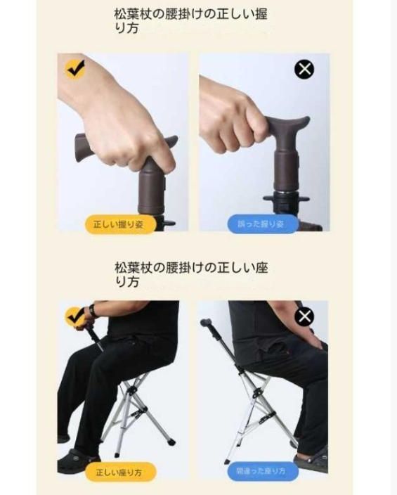 高齢者用杖腰掛け両用杖腰掛け付き腰掛け椅子携帯電動ワンタッチ開閉折りたたみ杖椅子
