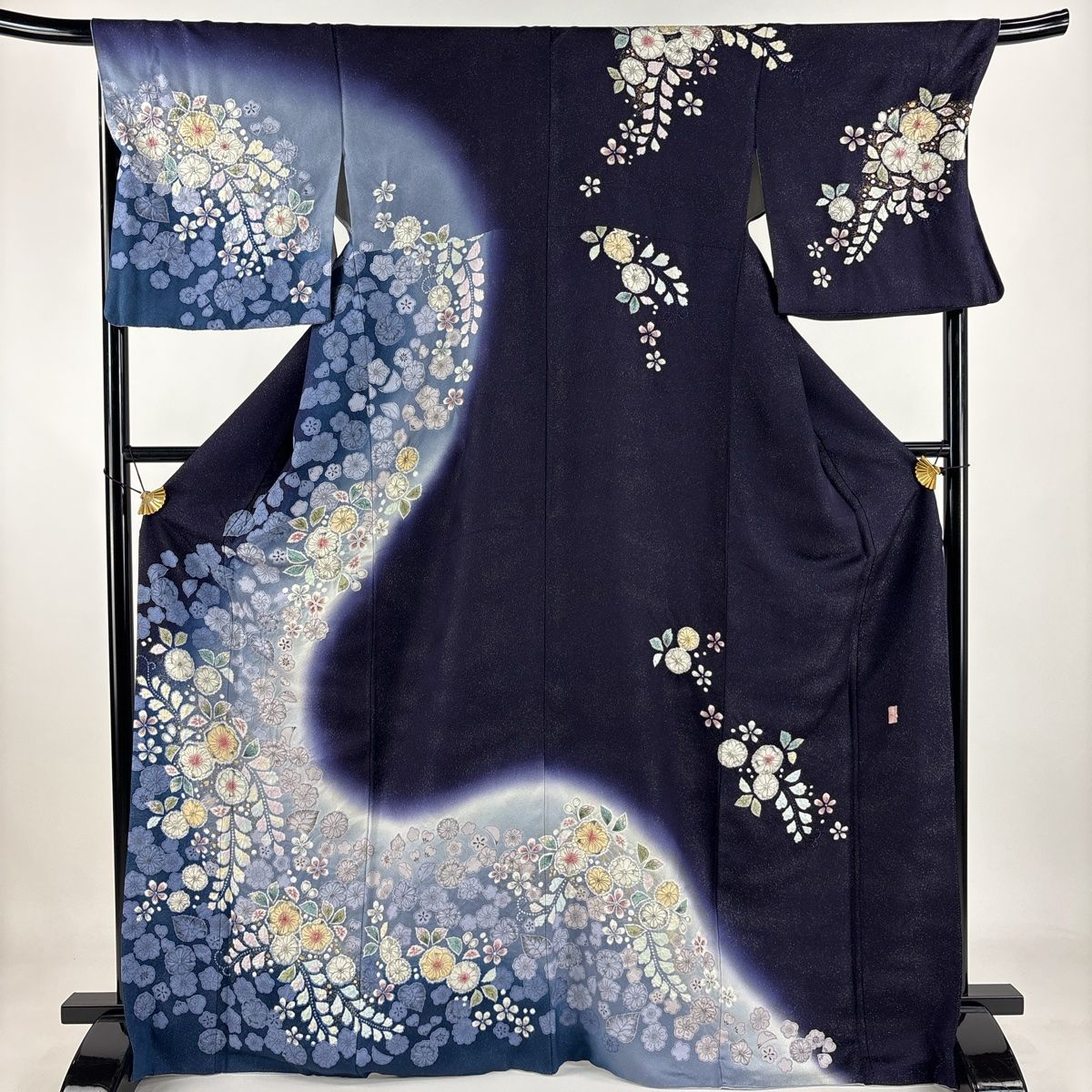訪問着 身丈170.5 cm 裄丈70 L 袷 徳永憲峯 落款 辻が花 銀通し 金彩 濃紺 正絹
