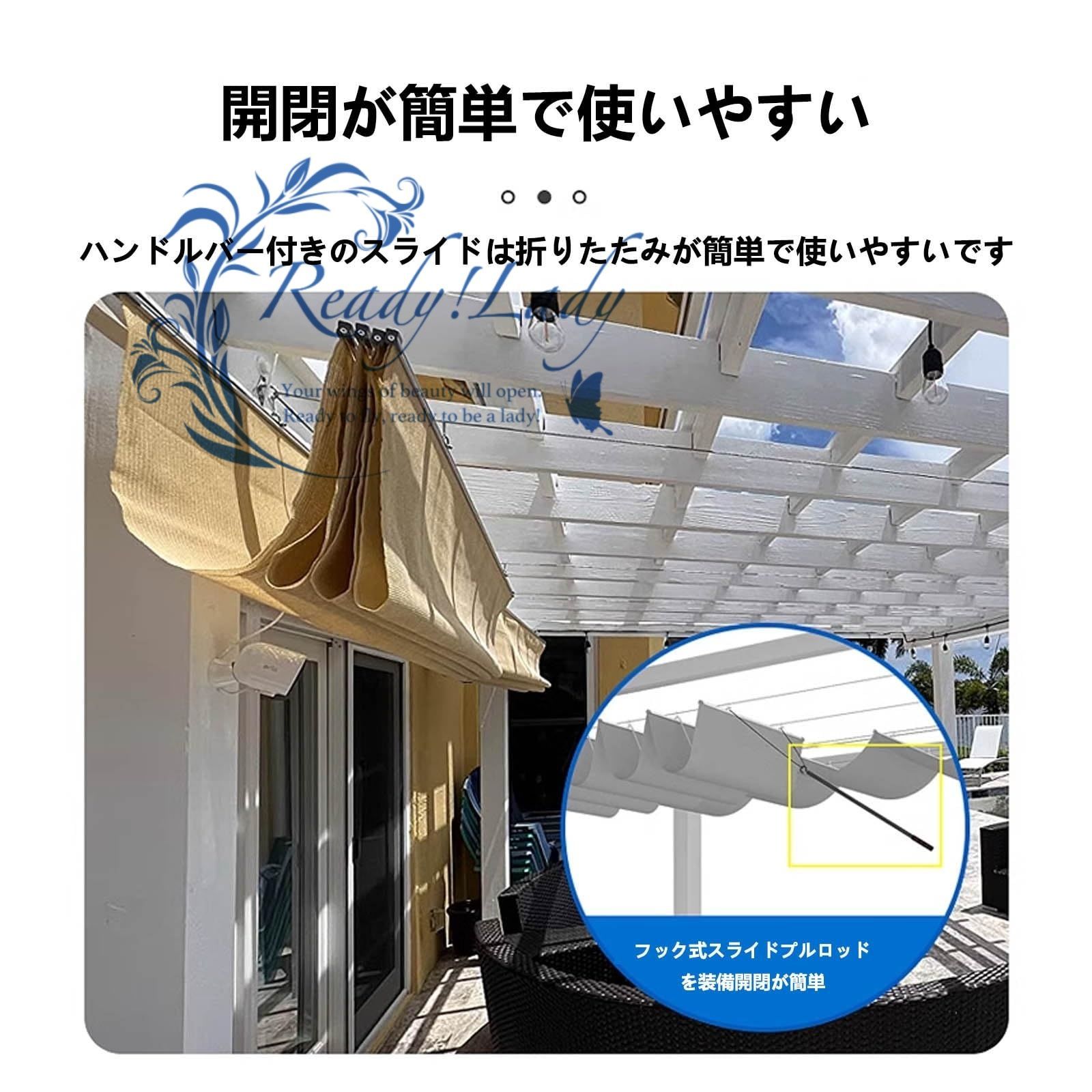 複数のシーンに適用可能:格納式サンセイル レストラン、バルコニー、庭園、テラス、中庭、サンルーム、野外など、さまざまなシーンに適用でき、さまざまな環境の遮光ニーズに簡単に対応でき、実用性も高いです