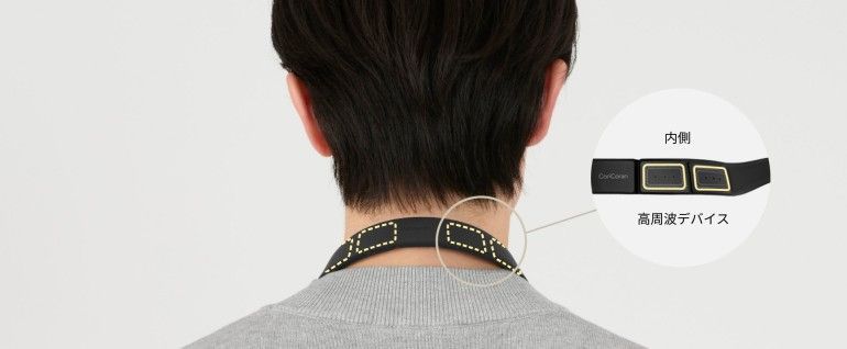 首にかけるだけで、高周波がコリを治療する。