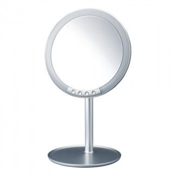 天気やその場の照明に影響を受けないLEDスタンドミラー。ナチュラル・ウォーム・クールの3色ライトです。本体ミラーの裏側に3倍拡大鏡が付いています。