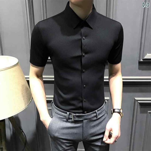 2 XL メンズ ファッション 服 男性用 オシャレ シンプル 大人 かっこいい 大きいサイズ ストリート 紳士服 夏 半袖 シャツ スタイル ノー アイロン 刺繍 スリム ハイエンド カジュアル ビジネス