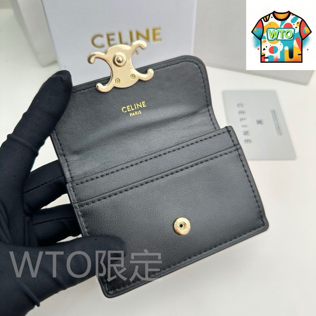 セリーヌ (Celine) の新作トライウンフカードケース(型番 16334)が入荷致しました。??と同期の人気シリーズで、華やかで洗練されたデザインが特徴です。高品質な頭層牛皮を使用し、しっかりとした質感と優れた耐久性を備えています。寸法は 10.5×7×1cm のコンパクトサイズで、持ち運びが非常に便利で、バッグに収納してもかさばりません。精致でファッション性に富むデザインは、日常のカジュアルシーンからお出かけシーンまで幅広く活用できます。黒色のクラシック配色が汎用性に優れ、長く愛用できるデザインです。今日限定の特別価格で提供中です。通常配送地域には送料無料でお届けいたします。
