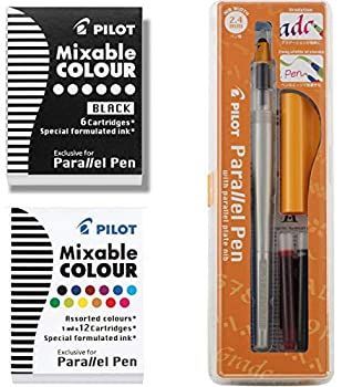 Pilot Parallel Pen 2 Colour Calligraphy Set with Black and Assorted Colours Ink Refills 4 mm Nib 90051