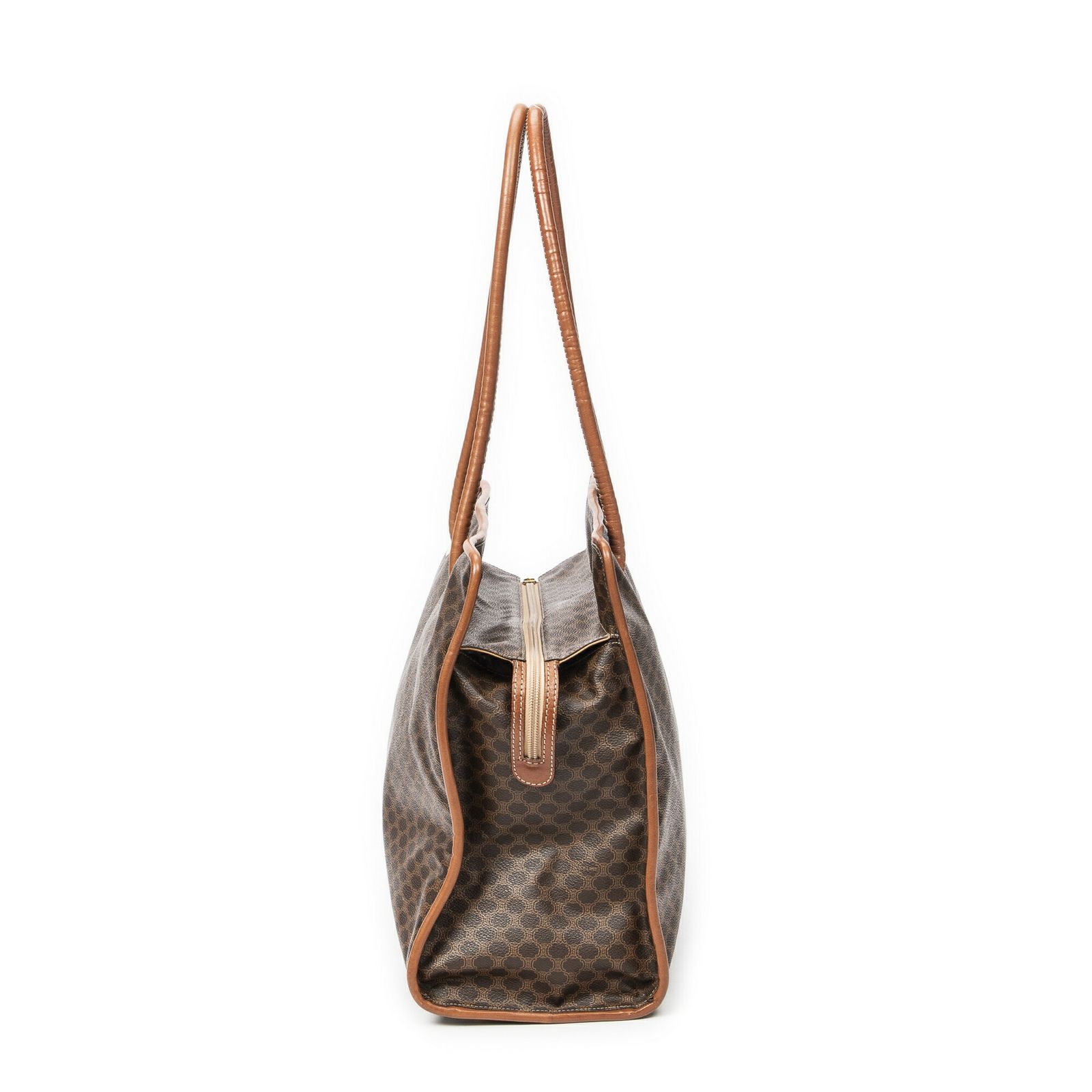 CELINE セリーヌヴィンテージ ジップ ショッパー茶色マカダムPVCキャンバスA