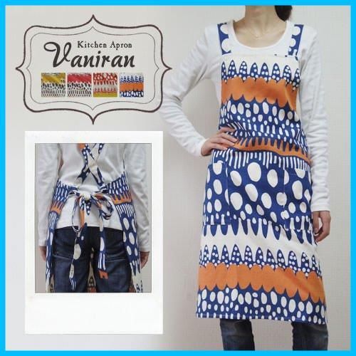 fabrizm 日本製 キッチンエプロン ひざ丈 バッククロス バニラン ブルー×オレンジ 1185-bl-bl