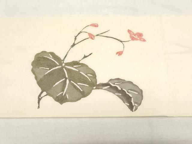 平和屋着物 九寸名古屋帯 手描き 草花文 正絹 dy