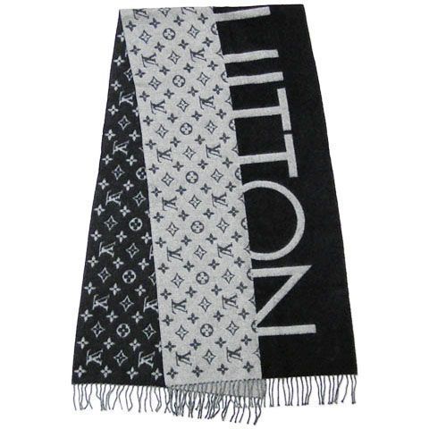 ルイ ヴィトン LOUIS VUITTON カシミヤ マフラー エシャルプ LVスプリット M 70924 ブラック グレー