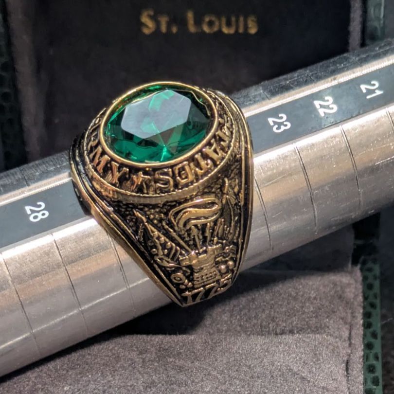 ヴィンテージ US ARMY ミリタリーリング 白頭鷲 1775年 ゴールド14 K電気メッキ エメラルドクリスタル 25.5〜26号 15.6 g