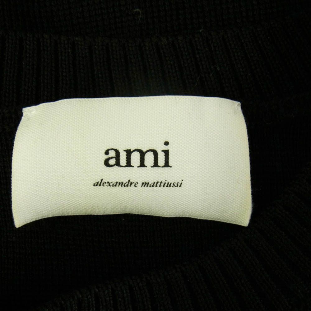 AMI PARIS アミパリス .001 ハートロゴ刺繍 ウール クルーネック ニット セーター ブラック系 L