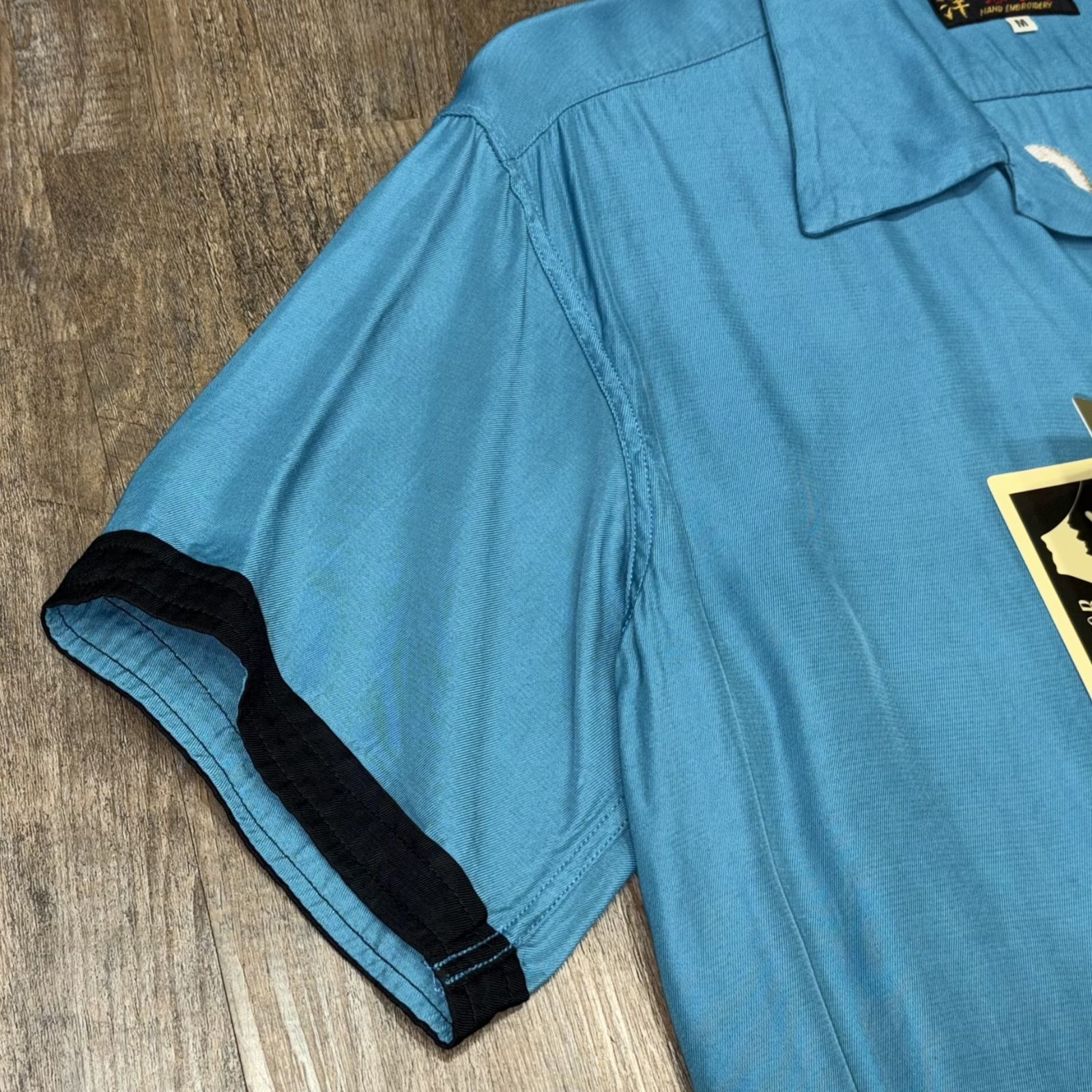 テーラー東洋 スカジャン刺繍 ボウリングシャツ 横須賀 ジャパン 人力車 アメカジ TT 39103 125 ブルー Mサイズ