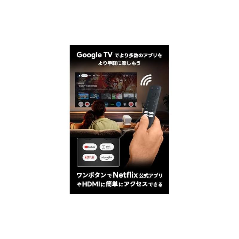 【Google TV搭載Netflix公式APP使用可】Google TV搭載したスマートプロジェクターなので、スマートフォンと同じ感覚でYouTubeやNetflix、Prime Vide、Hulu、Disney+、Abema TV、DAZNなど、さまざまなアプリを楽しむことができます。さらに、10W×2の高音質スピーカーも内蔵したオールインワンモデルなので、わざわざほかに機器を用意する必要がありません。